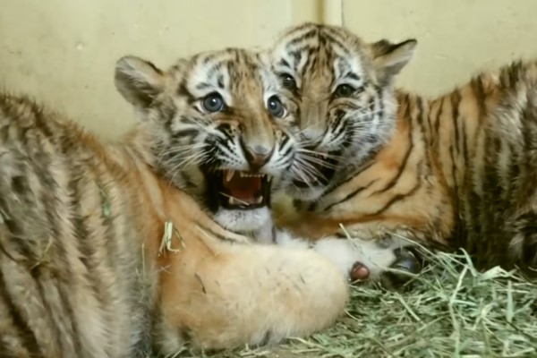 小老虎就像橘貓一樣,好奇心強,還有自己的小脾氣,看起來超可愛。希望這兩隻小老虎能健康長大吧!