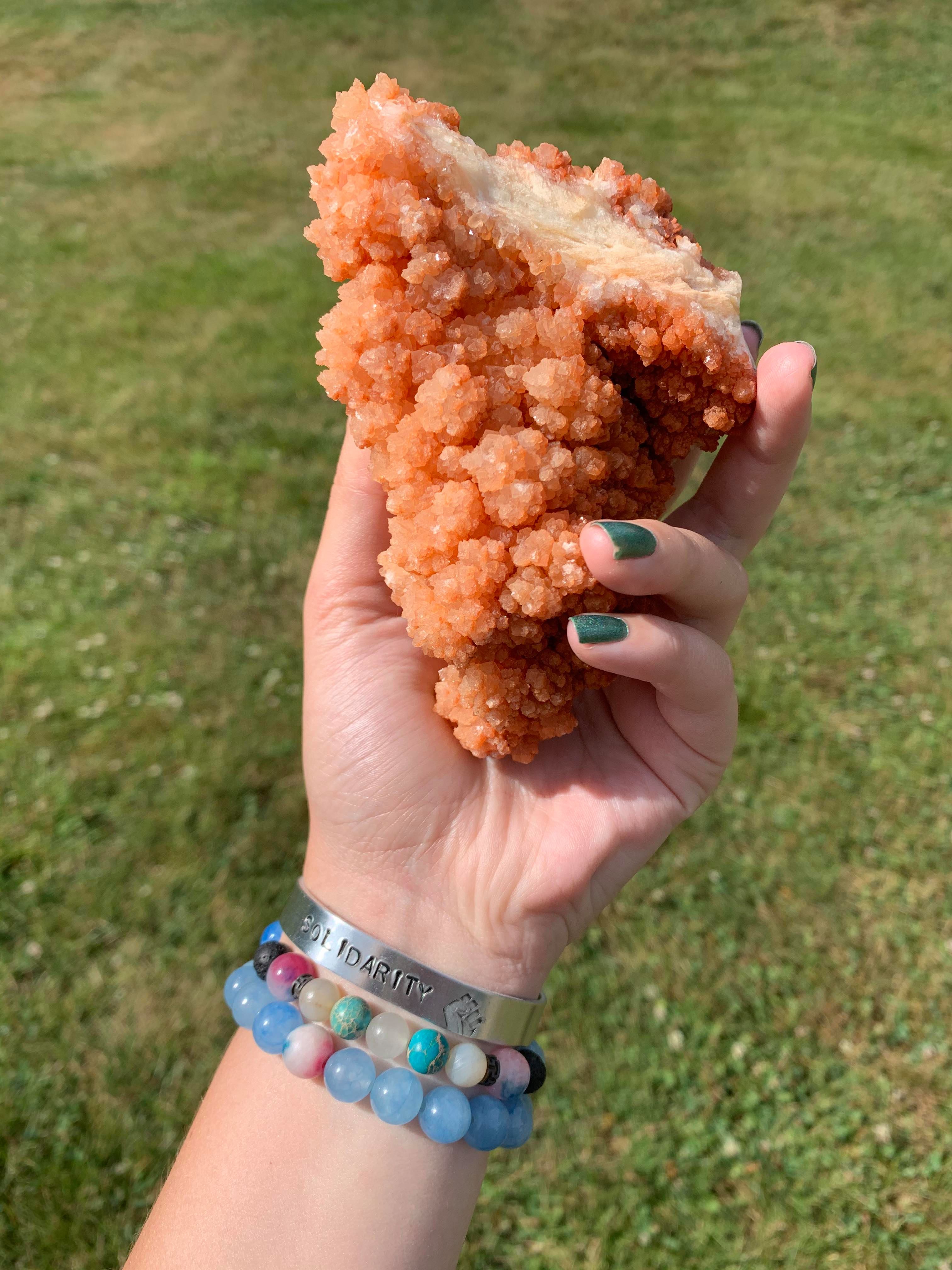 ▼Amelia表示,很多寶石看起來像食物。這塊水晶是碳酸鈣,可能是方解石也可能是霰石,簡單測試就能知道答案,但測試的話可能改變它的形狀,所以Amelia暫時不準備深究。