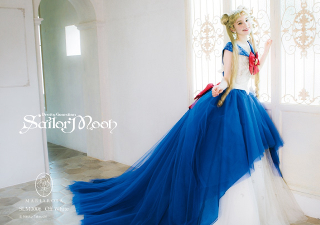 ▼在這一系列婚紗中,不僅有月野兔經典的藍色裙子+紅色蝴蝶結款式,還有仙氣十足的希蕾妮蒂公主款。