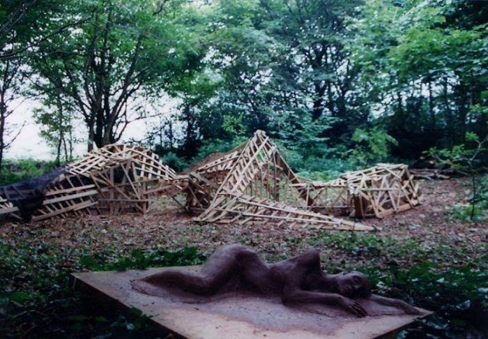 ▼這是一個側身躺在地上的女神。她的半側身體跟土地融合,身上長滿綠色植物。這些植物就是她的頭髮、衣服。