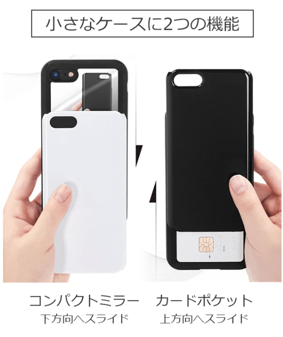 ▼向下滑會出現鏡子,女生可以隨時檢查儀容、補妝;向上滑則會露出收納卡片的空間。手機殼是經過特別設計的,卡片不會消磁,可以放心用。