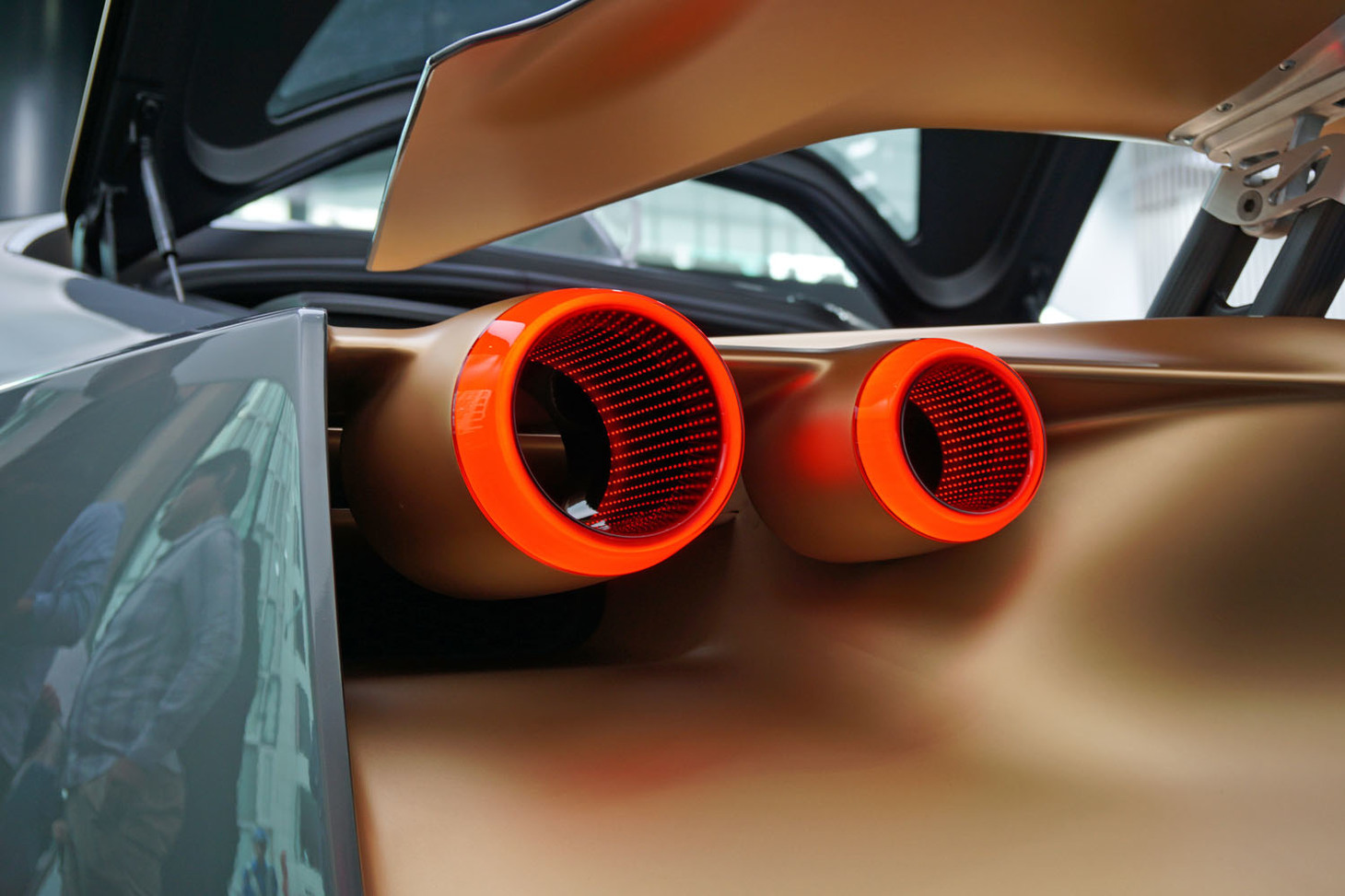 ▼GT-R50搭載3.8升V型6氣筒雙渦輪動力,最高馬力輸出可達720ps/7100rpm,根據Nissan產品溝通部的職員表示,這輛車除採用的GT3比賽用的大容量、大口徑雙渦輪增壓器與大型內空調外,更針對油料、發動系統、排換氣系統等進行改善,同時為了配合這幾項升級,也針對變速箱內部構造、離合器、內部傳動系統與連結裝置等進行強化。