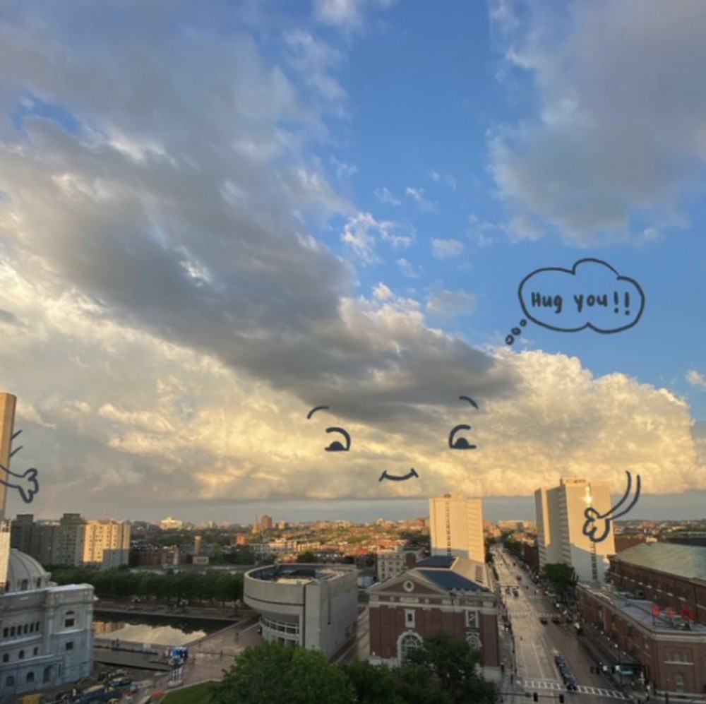 天空中的白雲並不罕見,沒想到乘著想像力的翅膀,白雲竟然變成了這麼可愛的畫作。大家也可以用同樣的方式創作,放飛想像,讓生活充滿樂趣~