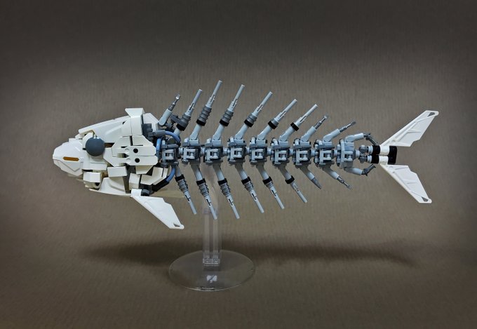 ヒレや背骨などが可動するよ。#レゴ #LEGO #レゴロボ #オリロボ#ツイッターで楽しむ展覧会 pic.twitter.com/GFINrtrAui