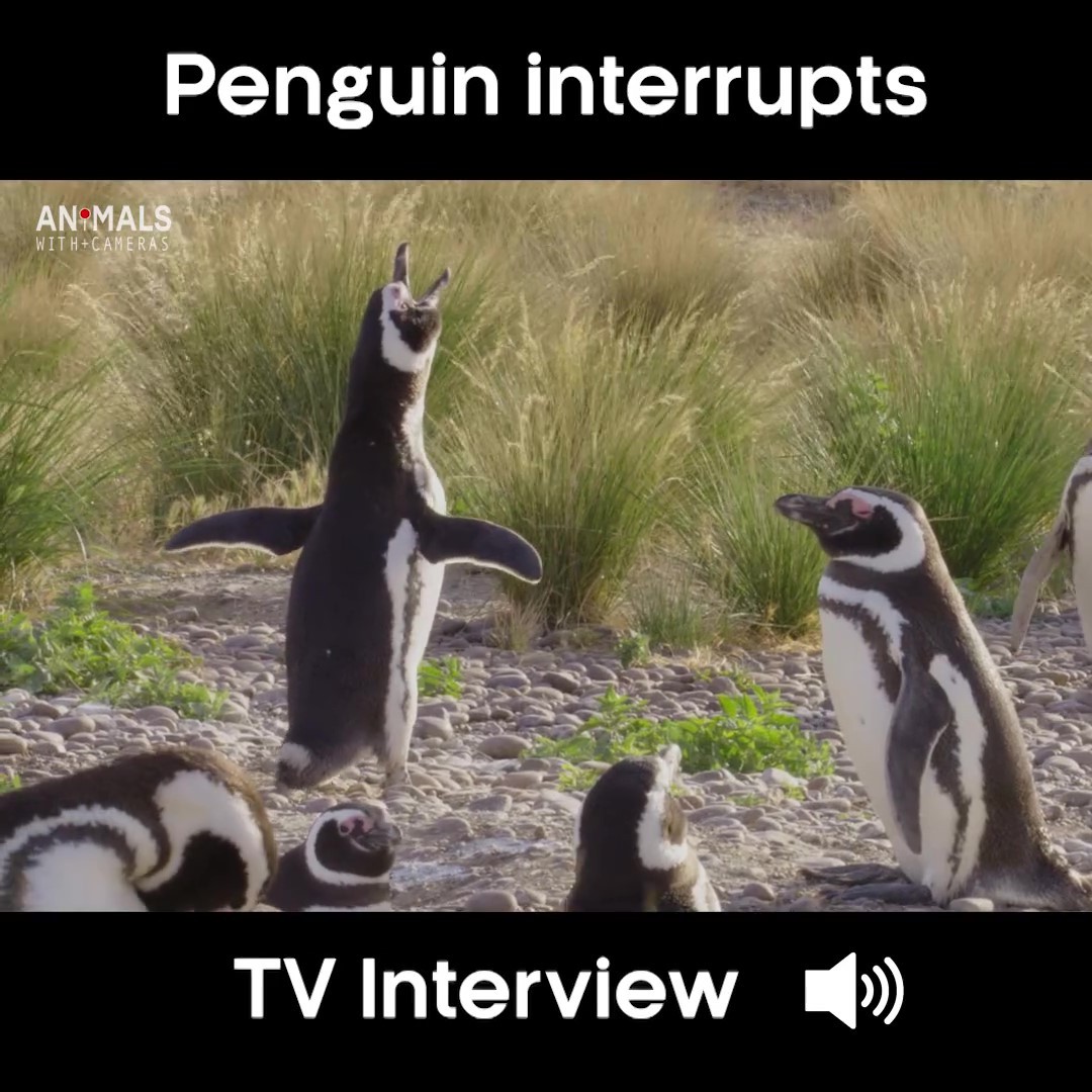 ▼專家在一群企鵝旁邊講述自己的故事:「我研究企鵝36年了…」這一幕本該很溫馨,但旁邊突然傳來「啊啊啊、叭叭叭」的聲音,就像有人在按喇叭。原來是企鵝在搗亂。