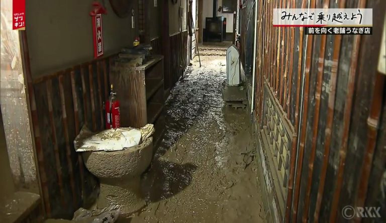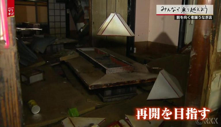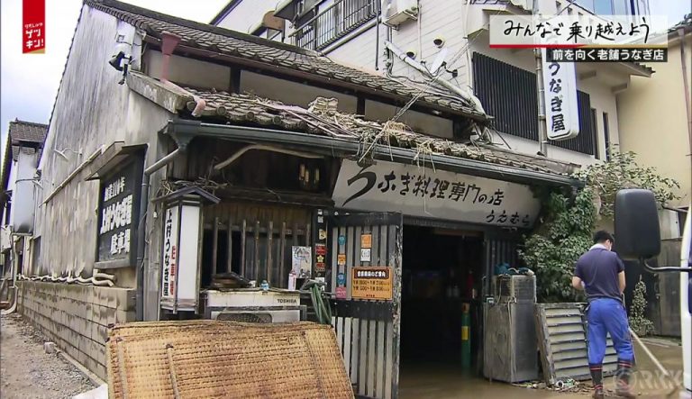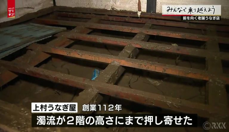 2020年07月14日日本熊本縣人吉市遭受豪雨引發的洪水,當地一間創立超過百年的鰻魚飯老店「上村鰻魚屋」也遭殃:當時大水灌到二樓地板上30公分處,廚房中傳承已久的秘傳醬汁、200隻鰻魚全都被大水沖走!