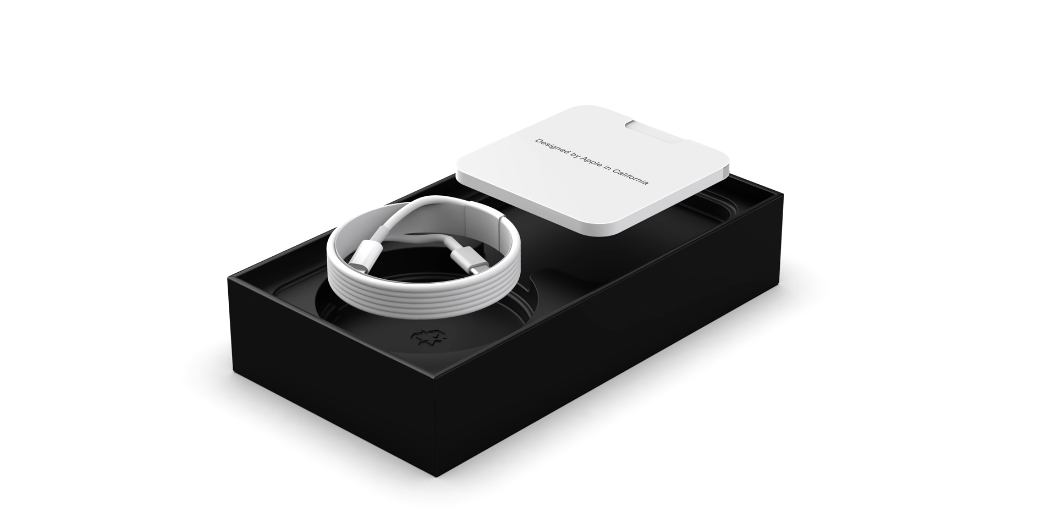 ▼有人製作了包裝盒內部3D渲染圖,從圖片來看,全新的包裝盒比以往要薄很多,盒子內部也更淺。其中的方形區塊是用來放說明書等文件的,圓形區塊則用來放Lightning充電線。
