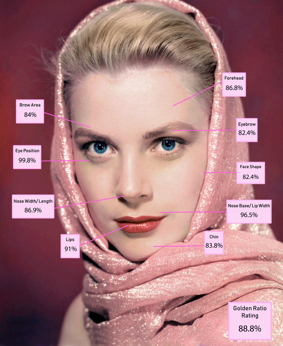 ▼第3名:88.8%,摩納哥王妃葛麗絲凱莉,曾經演出過電影、是好萊塢天后的她,美貌當然更是無庸置疑。在眼睛的分數上奪得超級高分,有著接近滿分的99.8%比例,嘴唇也同樣有著91%的比例,以些微的差距落後第二居於第三。