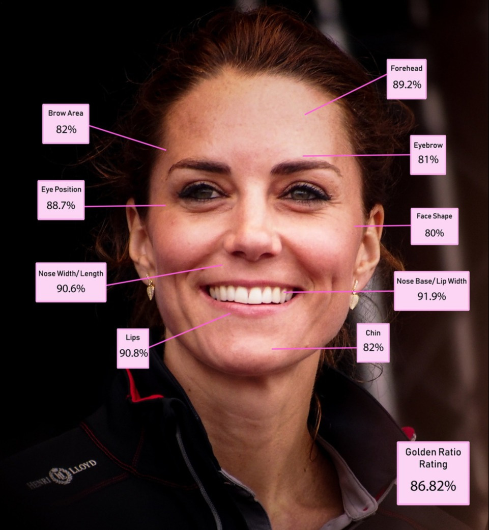 2020年07月23日皇室貴族的生活一向是百姓們茶餘飯後閒談的娛樂話題,最近英國的整形名醫朱利安狄希瓦(Julian De Silva)就依照「黃金比例」評比出五位最美的皇室成員。顧名思義,「黃金比例」就是以臉上五官的大小、長寬和之間的距離、比例等等數值來做評比,以數學的角度了看看世人一般認定的美貌是否符合黃金比例吧!