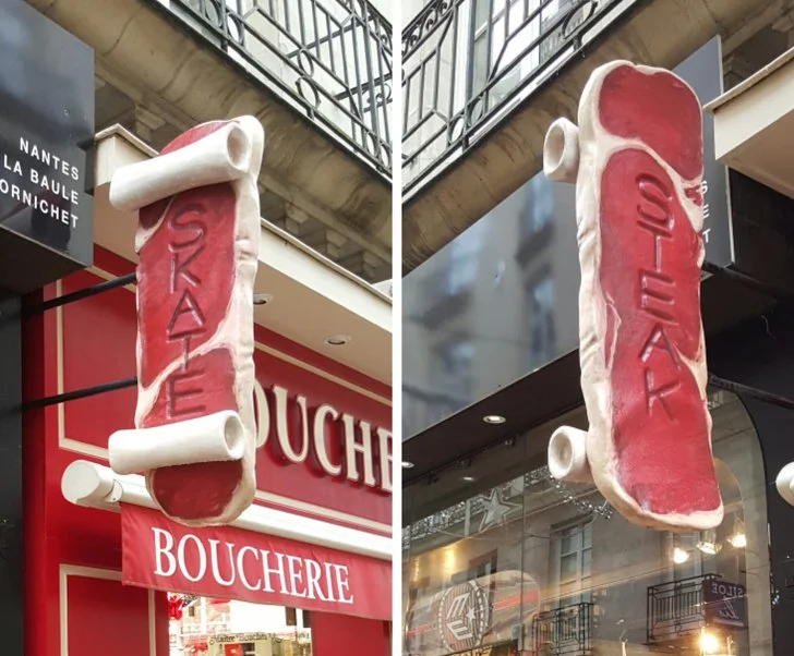 ▼9.相鄰的冰鞋店和肉鋪設計了很有趣的LOGO。