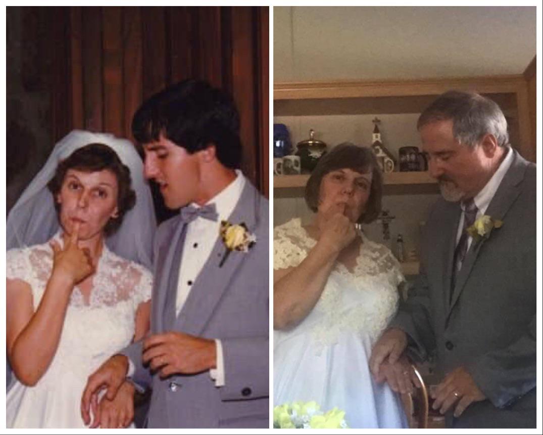 ▼4. 「我雙親結了37年的婚」,擺出和婚紗照同樣的動作,現在看有點俏皮呢!