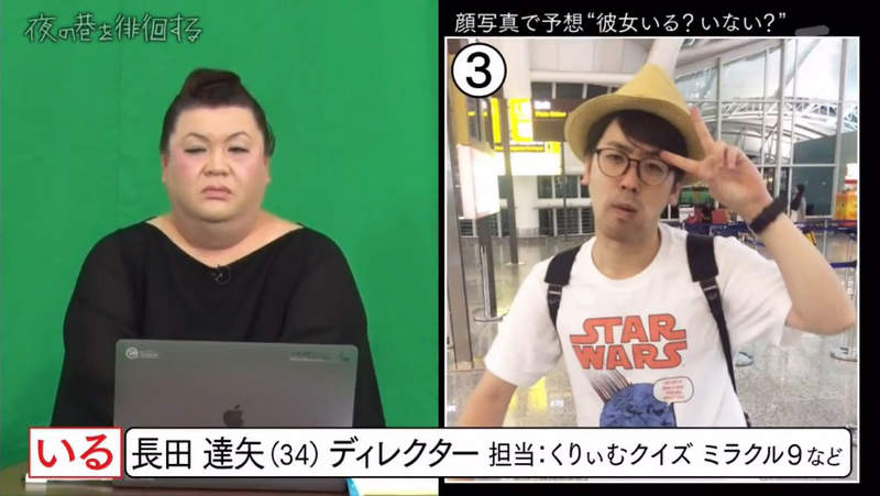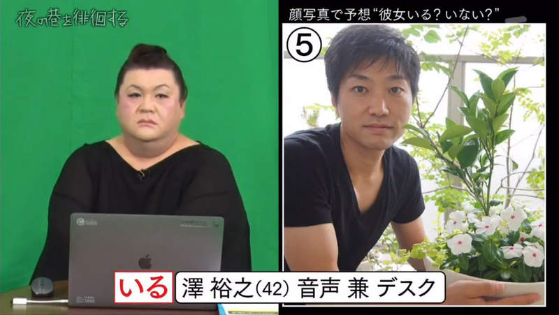 2020年07月29日你能從一個人的「面相」來判斷出他有沒有對象嗎?日本知名的綜藝節目主持人松子DELUXE主持朝日電視台播出的《夜の巷を徘徊する》節目,在7月17日播出的節目裡,節目組安排讓松子從「正面照」,來判斷一個人是不是有另一半,共有兩題,大家也來試試看自己猜不猜得準吧~