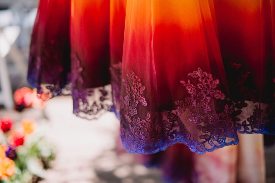 ▼Taylor婚禮的照片被po到網路上後引起了很多網友的關注。不少人跟她聯絡,希望她能幫自己設計與眾不同的婚紗。Taylor開心表示:「能讓新娘們穿上獨特的彩色婚紗,我真的很開心!我試著將自己的想法和色彩融合到婚紗中,也融入到婚禮中。現在我覺得自己就是一個藝術家!」