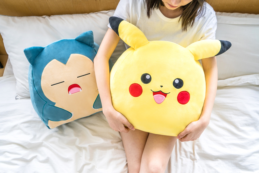 ▼「寶可夢三角靠枕」皮卡丘、卡比獸化身圓嘟嘟模樣,小肥臉嘴邊肉讓人睡前一定要捏兩下才睡得著,柔軟蓬鬆的觸感怎麼抱都喜翻。>///<