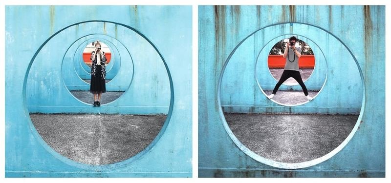▼互拍情侶照看起來簡單,其實沒那麼容易。Zuzu和Peter介紹說,他們必須先找一個從兩個方向看都漂亮的地點,這兩個方向的風景最好還有一些聯繫,比如階梯、坡地、高台等等都是很好的選擇。