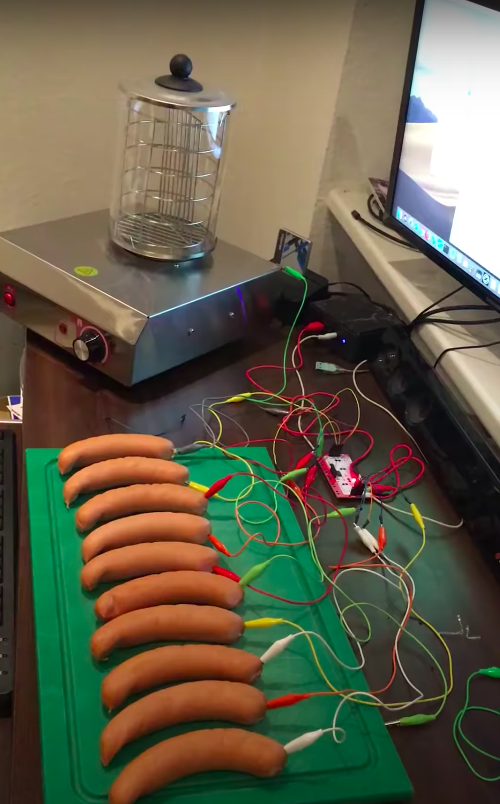 之前曾有人用香蕉彈鋼琴,其實跟用香腸彈鋼琴的原理是一樣的,市面上也有很多類似的玩具。雖然沒有用這些香腸彈出完整的曲調,但能夠發聲也很有趣啦~