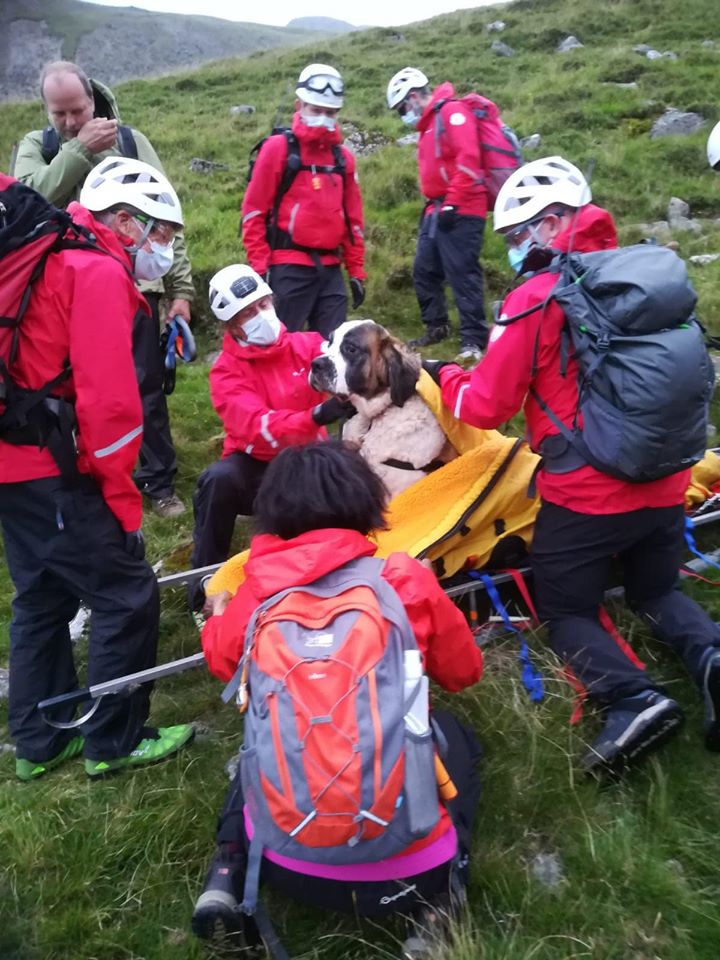 ▼那天家人帶Daisy去攀登英格蘭最高峰斯科費爾峰(Scafell Pike)。一家人準備下山時,重達55公斤的Daisy卻突然不走了。家人實在沒有辦法,只能向沃斯代爾山區救援隊(Wasdale Mountain Rescue Team)求助。救援隊的志工立刻出動,他們表示:「我們的團隊成員家裡有寵物狗,我們也有搜救犬,所以我們能理解狗狗和主人現在的苦惱。」
