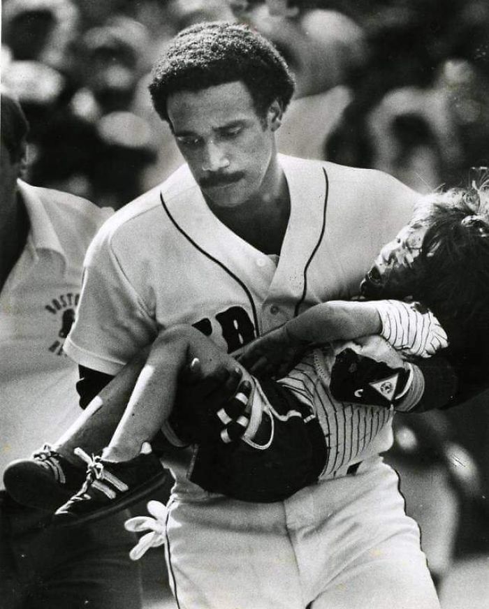 ▼1982年,球場上的球飛出場外,場上的球員 Jim Rice 馬上抱起受影響的小男孩到醫療室急救,最後成功拯救了這個小孩。