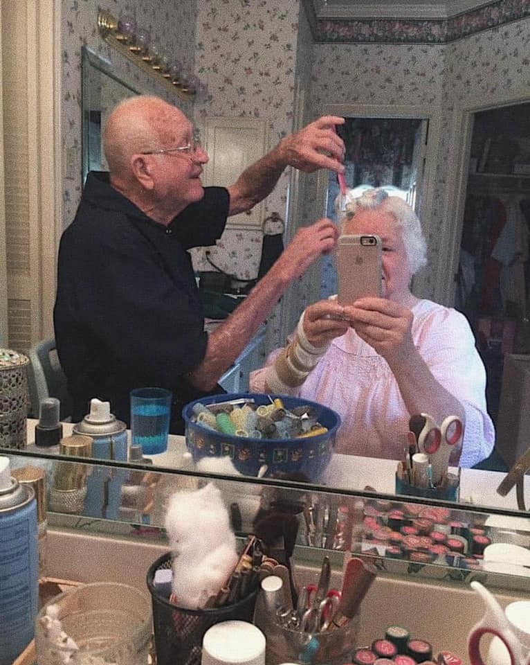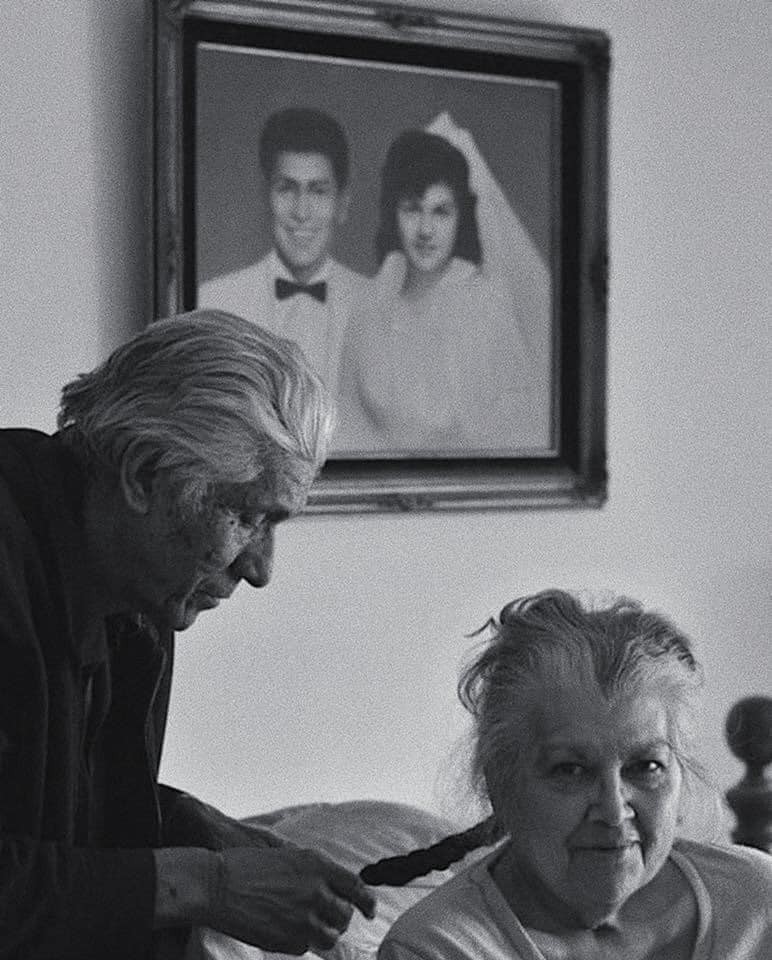 ▼10.在我心裡,妳永遠都是年輕時的樣子。年輕時幫妳吹頭髮,現在幫妳編辮子。