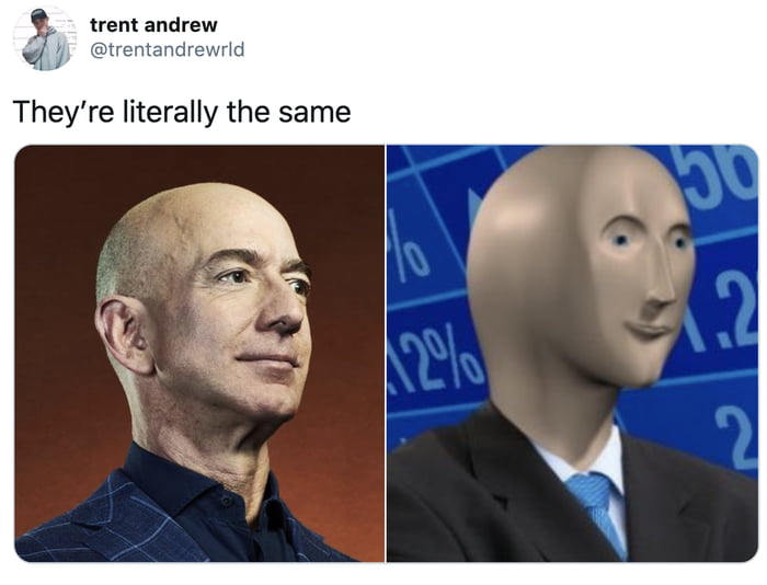 2020年08月31日亞馬遜CEO傑佛瑞貝佐斯(Jeff Bezos)是富豪排行榜上的風雲人物。最近這位大富豪引發網友討論,這次大家關注的不是他的巨額財富,而是他的外表。一位網友發現,傑佛瑞貝佐斯跟迷因Meme Man非常像,忍不住笑說:「他們根本一模一樣。」