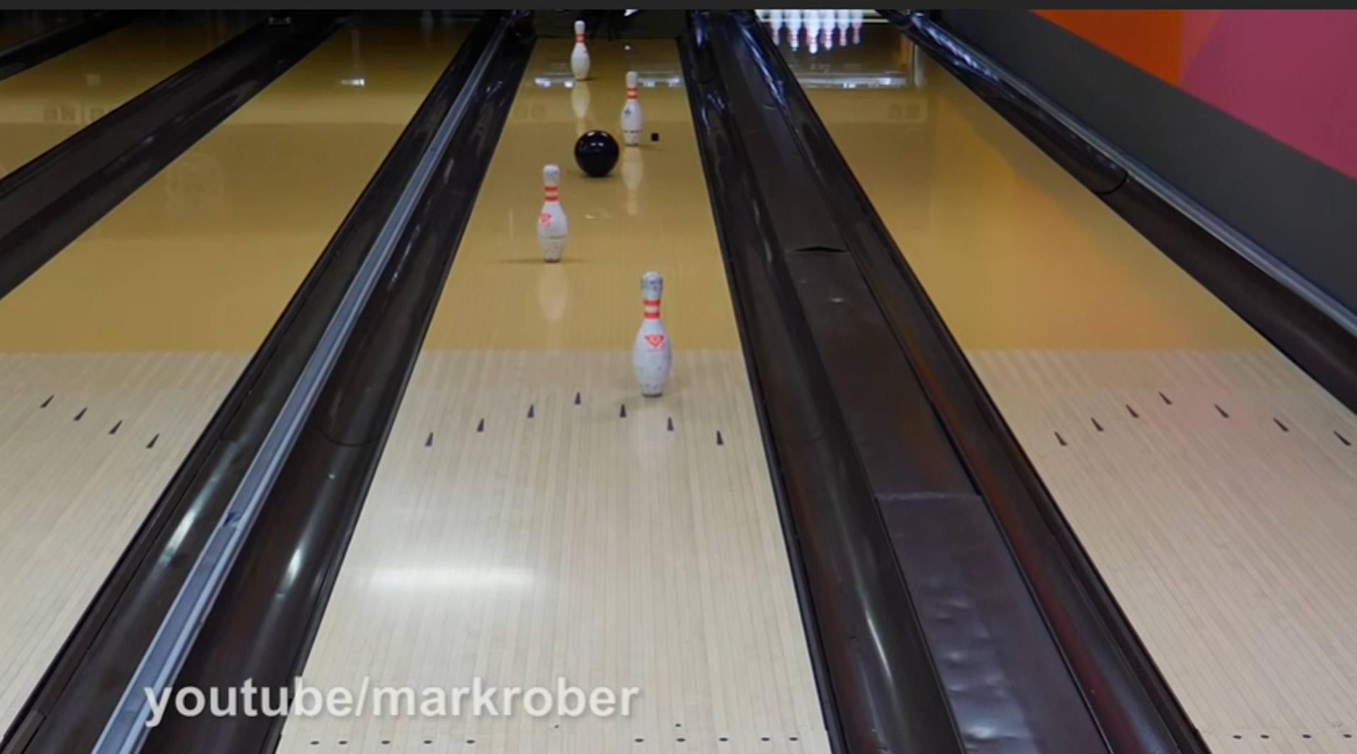 ▼不過使用機械保齡球也需要一些技巧,比如正面弄倒三角型中最頂的一支球瓶時,旁邊的球瓶可能不會倒。只要以中間偏6度的位置往中間的球瓶出手,就能得到Strike了。