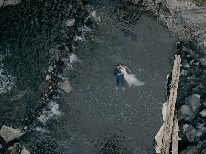 James和Chelsie拍攝的這組婚紗照非常成功,他們找到了合適的拍攝地點,攝影師也把周圍的環境完美利用起來。水中婚紗太浪漫啦~