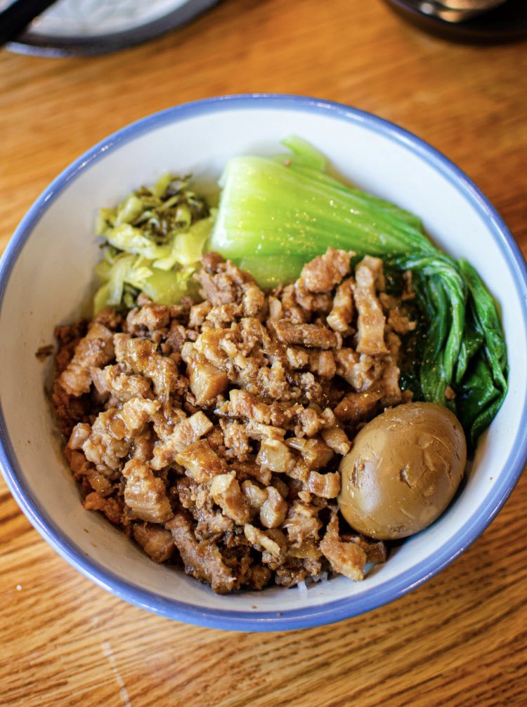 ▼另外她也講解到,那碗飯就是滷肉飯,是台灣最道地、有象徵意義的平民美食,通常會搭配菠菜、滷蛋等配料。