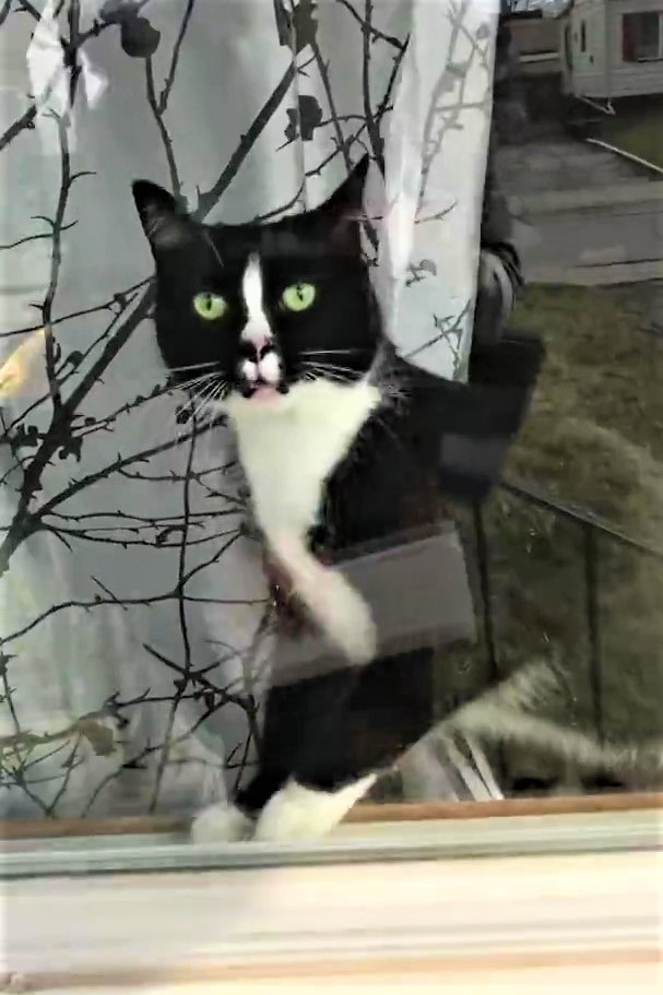 比狗還派!賓士貓見郵差「氣得罵罵號」 貼窗戶標準SOP:快滾粗朕的地盤!