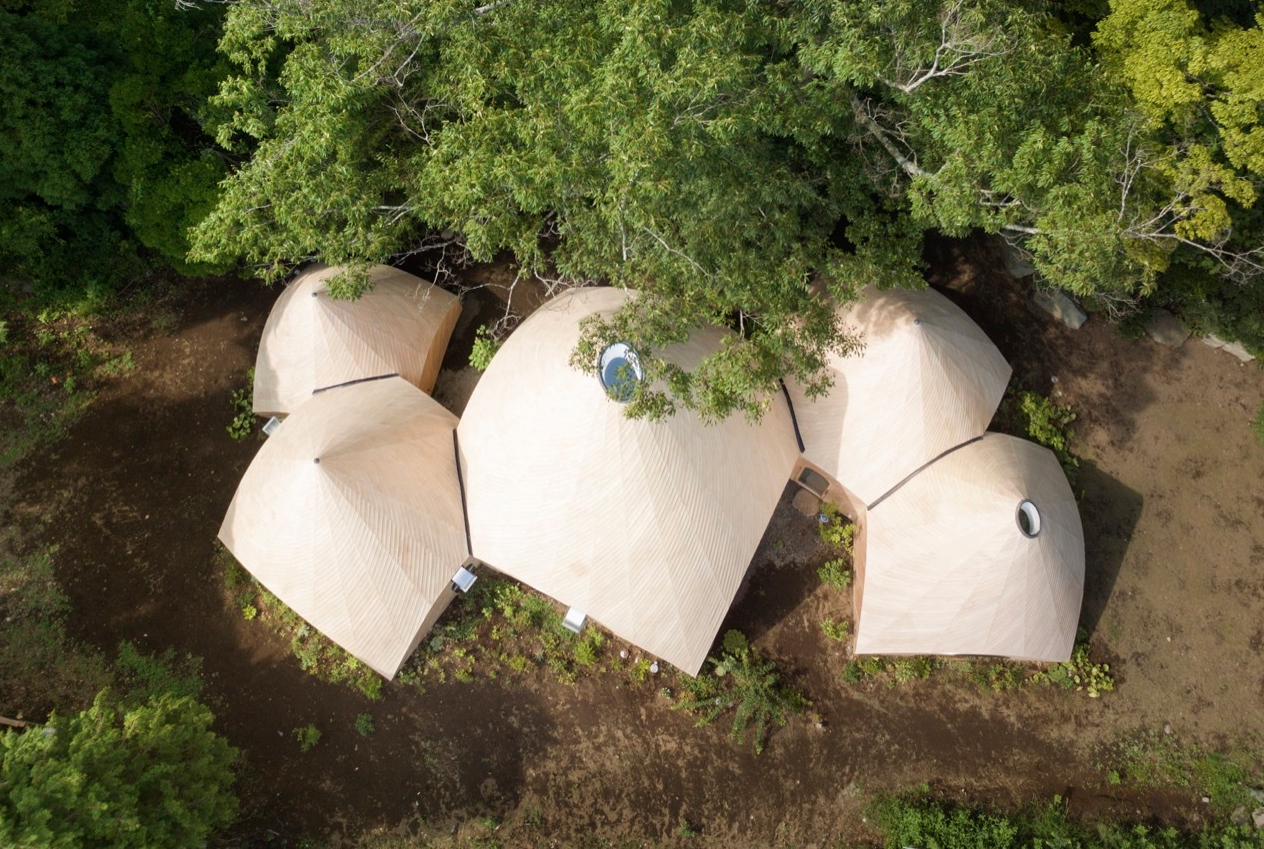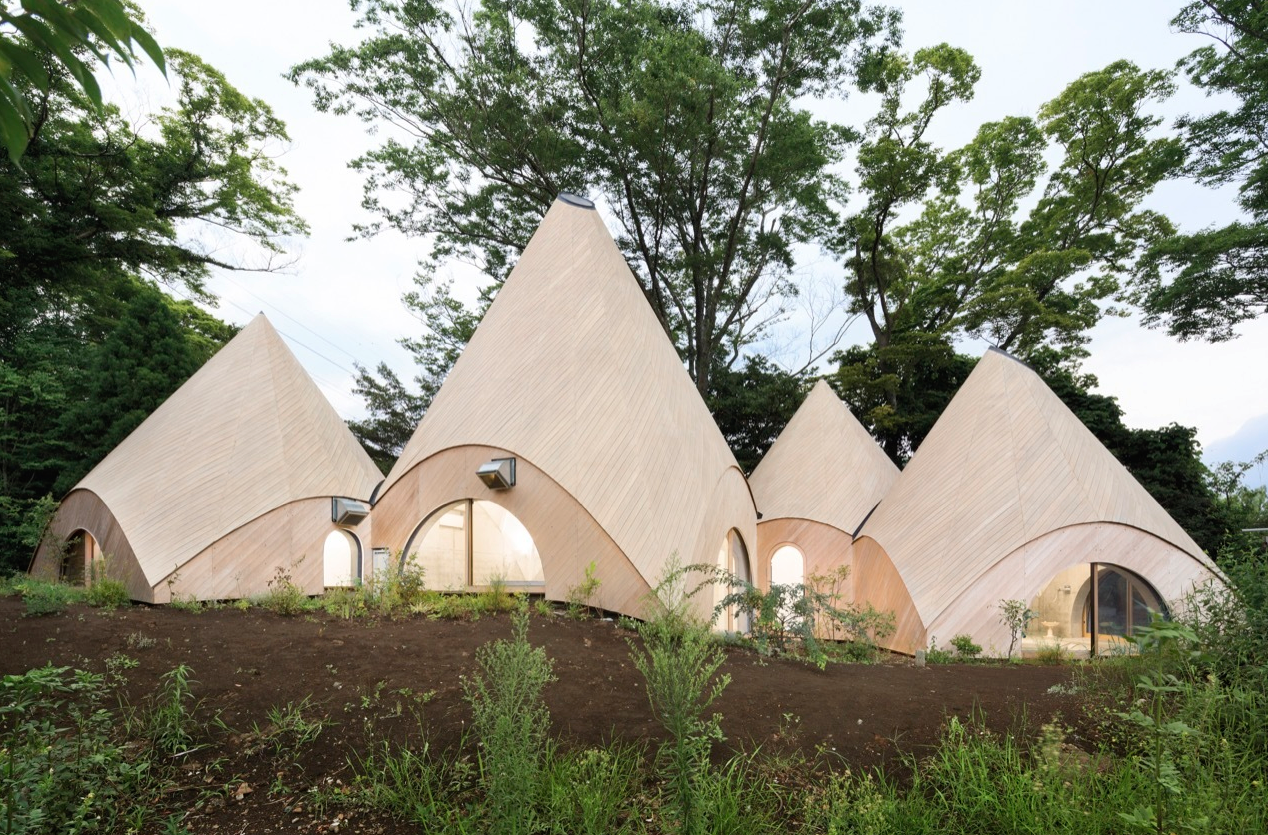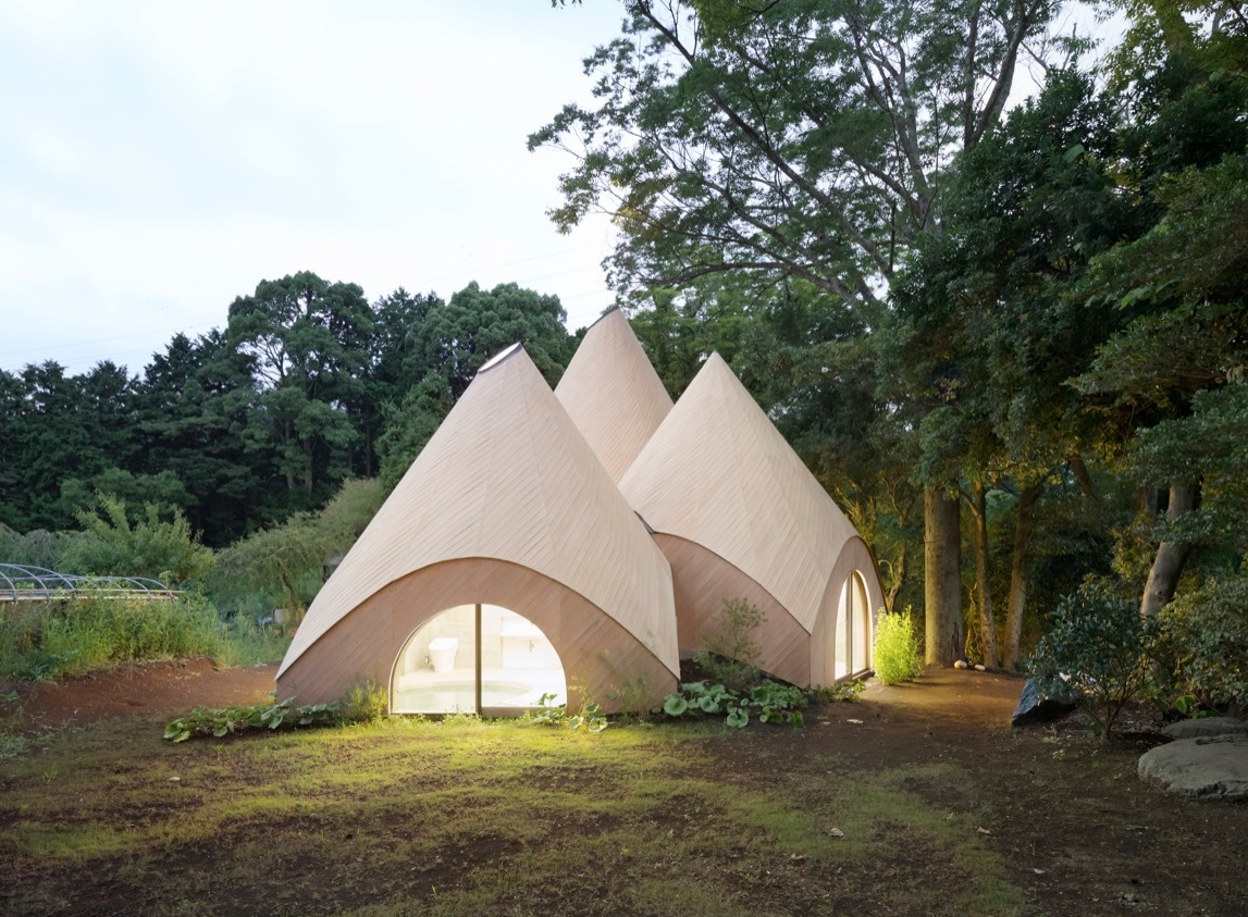 ▼這座建築由5座帳篷一樣的小屋組成,佔地約100平方米。小屋有不規則的方形底,還有圓錐形的頂,看起來就像平時露營用的帳篷,但5座小屋的牆面可以互相連通。