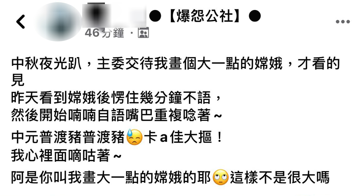最親民嫦娥!主委交代「畫大一點」才看清楚 網看成品笑翻:還能奔月嗎?