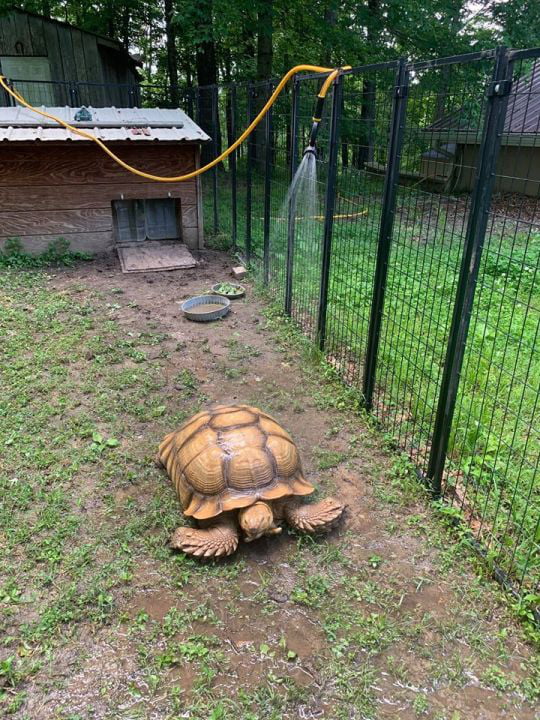 ▼今年6月8日,Solomon瞞著主人偷偷跑出家門。這隻68公斤的蘇卡達象龜就這樣消失不見,展開了一場為期74天的流浪冒險。直到8月21日,一對父子才聯絡到Solomon的主人將牠送回家,主人這才知道牠根本沒有跑遠。