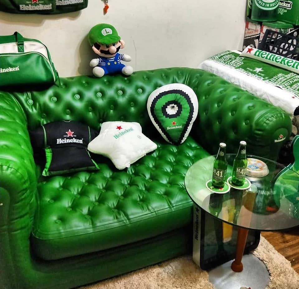 網友們看到原po的收藏都很佩服,紛紛表示:「沙發是要喝到什麼程度才會送」、「看來這應該是VVVVIP等級」、「這根本是品牌博物館了」、「也太強了」、「這是要喝到什麼程度才有辦法這樣」。整個房間都是海尼根主題,這到底是喝了多少才能拿到這些贈品啊?!
