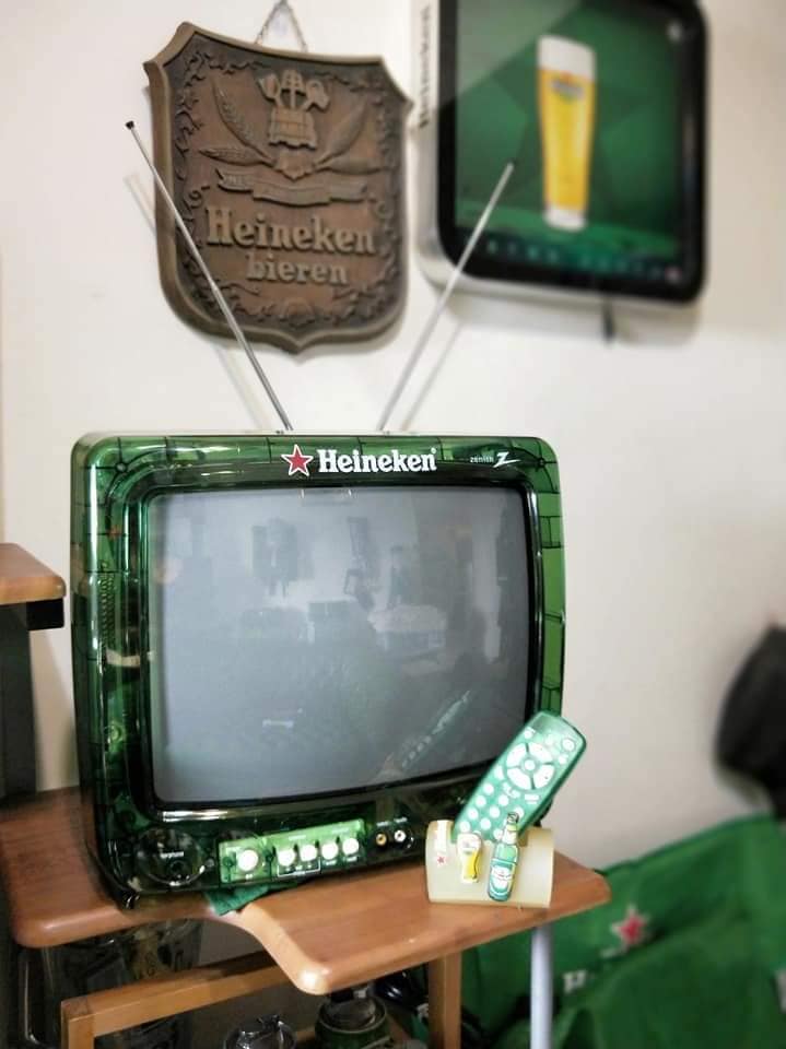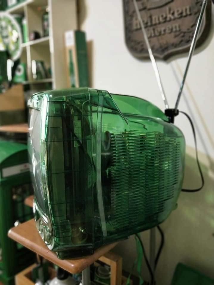▼這台電視的外殼是半透明的綠色,讓人聯想到啤酒瓶。上面還有海尼根的logo,整體造型非常復古,也非常可愛。