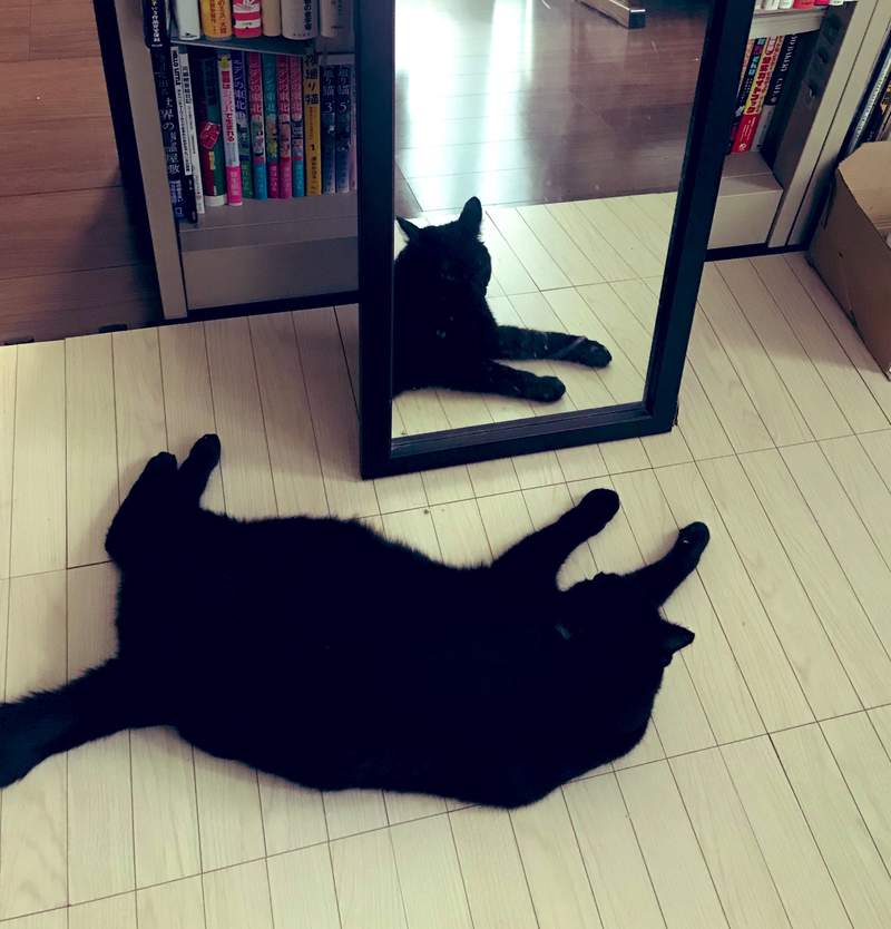 ▼現實中的貓咪明明慵懶躺在地上,鏡子裡卻是抬起頭來的狀態。早就聽說過黑貓不一般,但拍到這樣的照片也太不可思議了!網友們看到照片後紛紛表示:「視線移開,覺得鏡子裡的貓好像在看這邊一樣。」