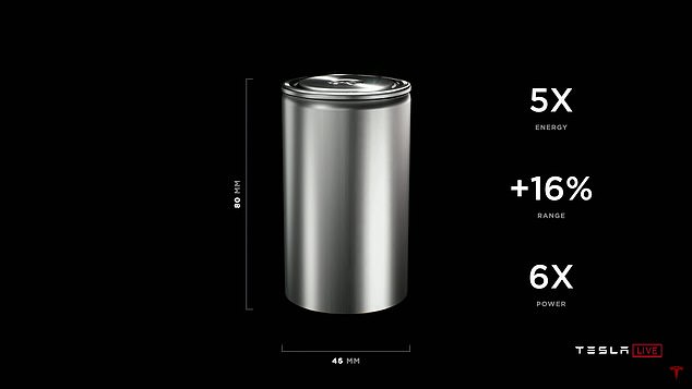 ▼在電池日上,特斯拉發布了全新的「4680電池」。這款電池直徑為46mm,長度為80mm,能量密度整體提升5倍,功率輸出提升6倍,續航里程提升16%,每千瓦時的成本下降14%。