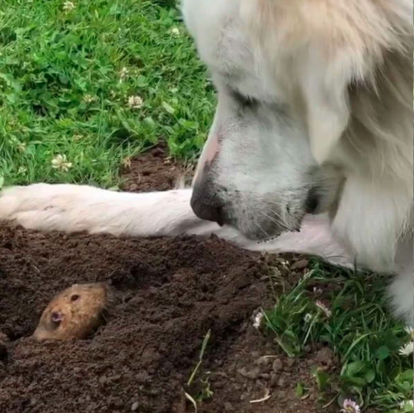 阿汪發現地洞!乖等出口看見「地鼠現身」 2隻超萌互動:你好呀❤️