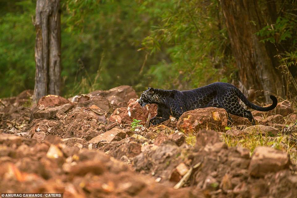 ▼24歲攝影師Anurag Gawande幸運拍到了這隻優雅、神秘的貓科動物。黑豹獨特的毛色是隱性基因突變造成的,這種現象跟白化症正好相反。