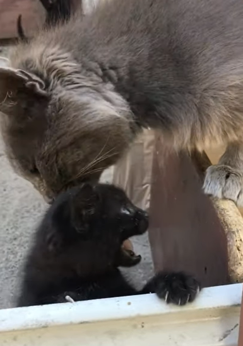 貓爸爸「好奇聞小貓」嚇到牠炸毛 貓媽氣噗噗追打:小孩不是這樣顧的!
