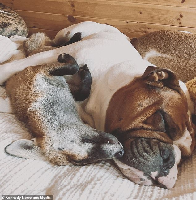 ▼Pauline剛剛將Marley帶回家時,擔心牠跟家中的狗狗相處不好。Ernie確實非常警惕,不願意靠近Marley。但隨著時間的推移,牠們逐漸變得親密起來。大概3個星期後,牠們成為了好朋友,每天一起玩耍、一起吃飯、一起睡覺。
