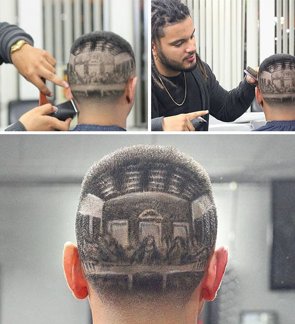 ▼這位髮型師走的是文藝路線,他喜歡文藝復興藝術,直接來了一幅曠世巨作《最後的晚餐》。