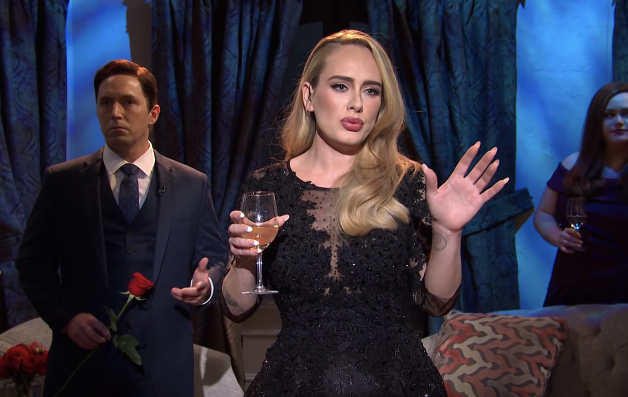 ▼愛黛兒在節目開場白中說:「Hello,it’s me!我超興奮,終於能來主持這個節目了。我本人非常熱愛這個節目,而且當年第一次登上SNL之後,成功把我的音樂事業帶來了美國,那已經是12年前的事了。」