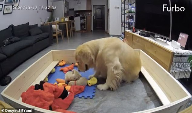 媽咪最愛的都給你們! 寶寶哭鬧阿金「3hr來回叼玩具」 監視器看哭飼主:是母愛
