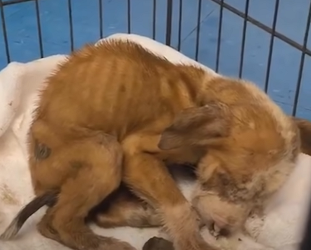 ▼紙箱中的Jiminy Cricket剛剛出生不久,牠瘦骨嶙峋、掉毛嚴重,應該有皮膚病。Shannon不忍將小狗丟在那裡,連忙帶牠去看獸醫。