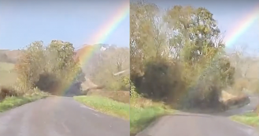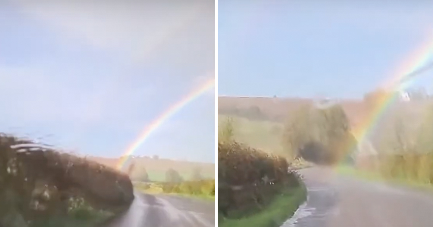 ▼那天Tanya Stilgoe和男友載著2個孩子在一條小路上行駛,天空中出現一道彩虹,彩虹的盡頭就在他們前方。他們穿過彩虹時激動地大叫出聲:「我們在彩虹的盡頭!在彩虹的盡頭!」