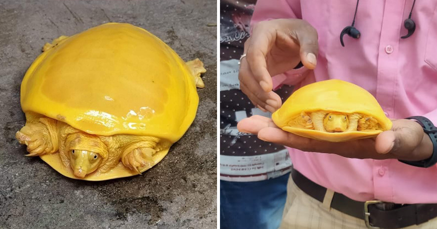 2020年11月06日日前印度東部西孟加拉邦的一位農夫在池塘中發現了一隻很奇特的烏龜。牠的外殼和皮膚都是金黃色,跟普通的烏龜顏色差很大。這已經不是印度第一次發現金黃色烏龜了,今年7月發現的一隻金黃色烏龜就在網路上引發討論。專家認為,這可能是白化症導致的。