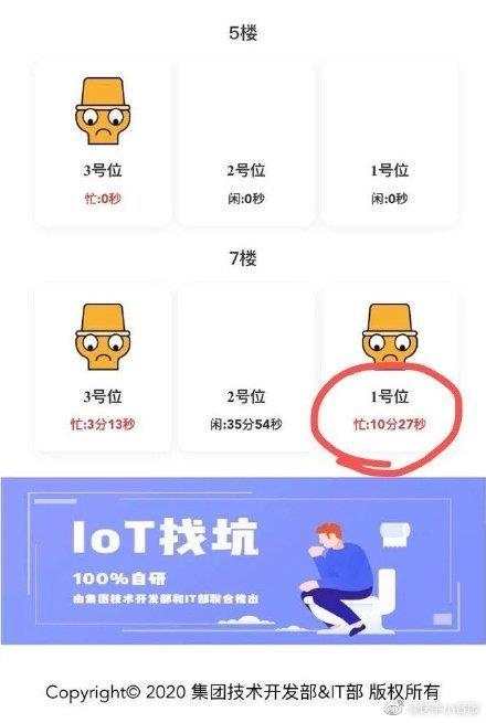 ▼公司在微博解釋說,園區內的廁所位置有限,員工上廁所排隊現場擁擠。但因為樓體結構限制,在樓內增加廁所坑位的話,施工複雜度太大。所以安裝這個計時器,是為了測試每天廁所的使用次數和時間,以便判斷需要增加的移動廁所數量。