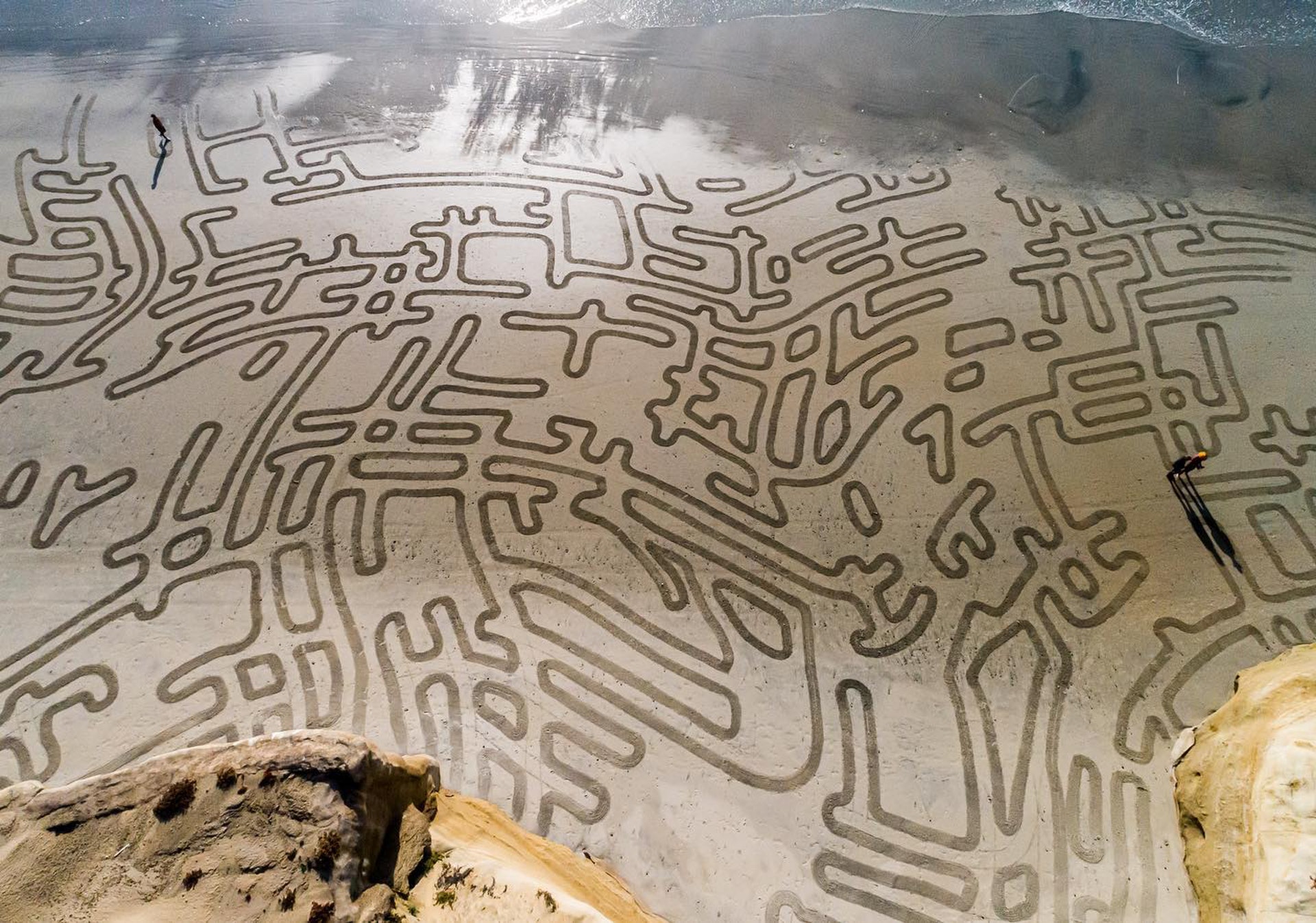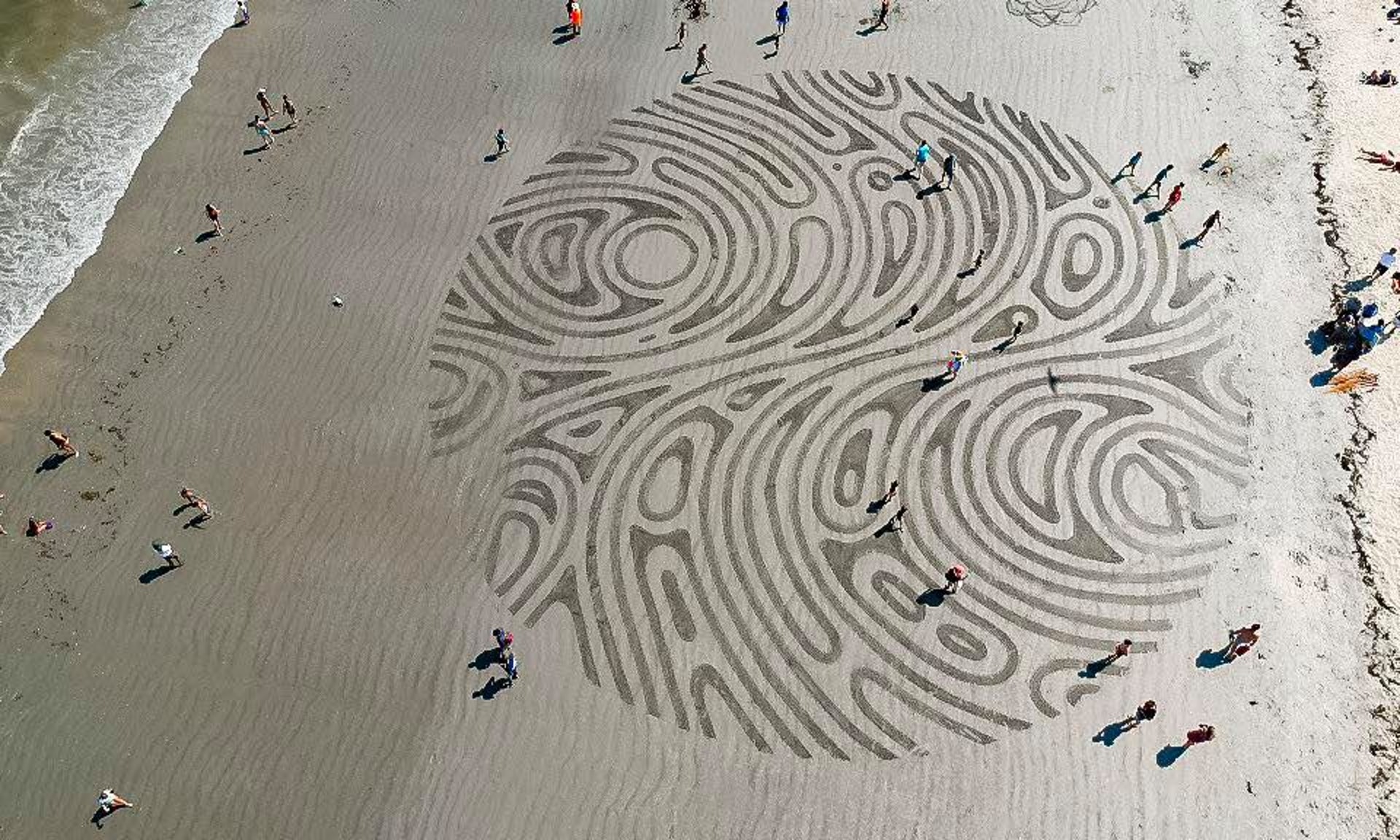 ▼Andres Amador以前做過雕塑工作,對幾何有獨特的心得。研究創建形狀的方式時,他偶然發現了古人設計巨型廟宇和建築物的方法。他對此很感興趣,跟朋友去海邊玩時,就在沙灘上跟朋友分享自己新學到的東西。那時候他突然意識到,可以將沙灘當成巨大的畫布來創作。