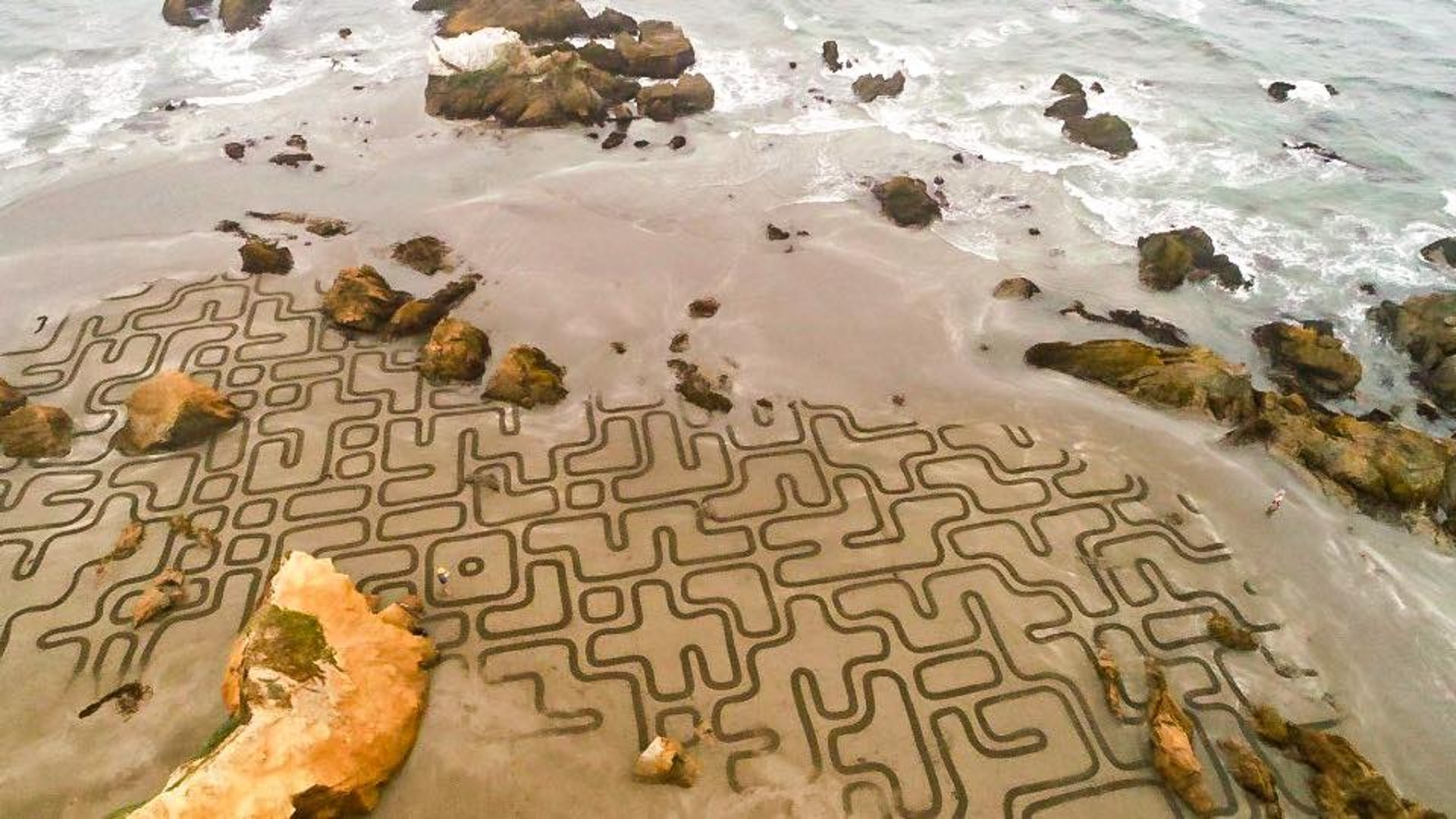 2020年11月07日很多人去海邊玩時會在沙灘上畫畫或堆沙堡。加州自然藝術家Andres Amador也把沙灘當成畫布來畫畫,他會創作簡單的幾何圖案,最後組成大規模的花紋,看起來充滿藝術感,讓人覺得很壯觀!