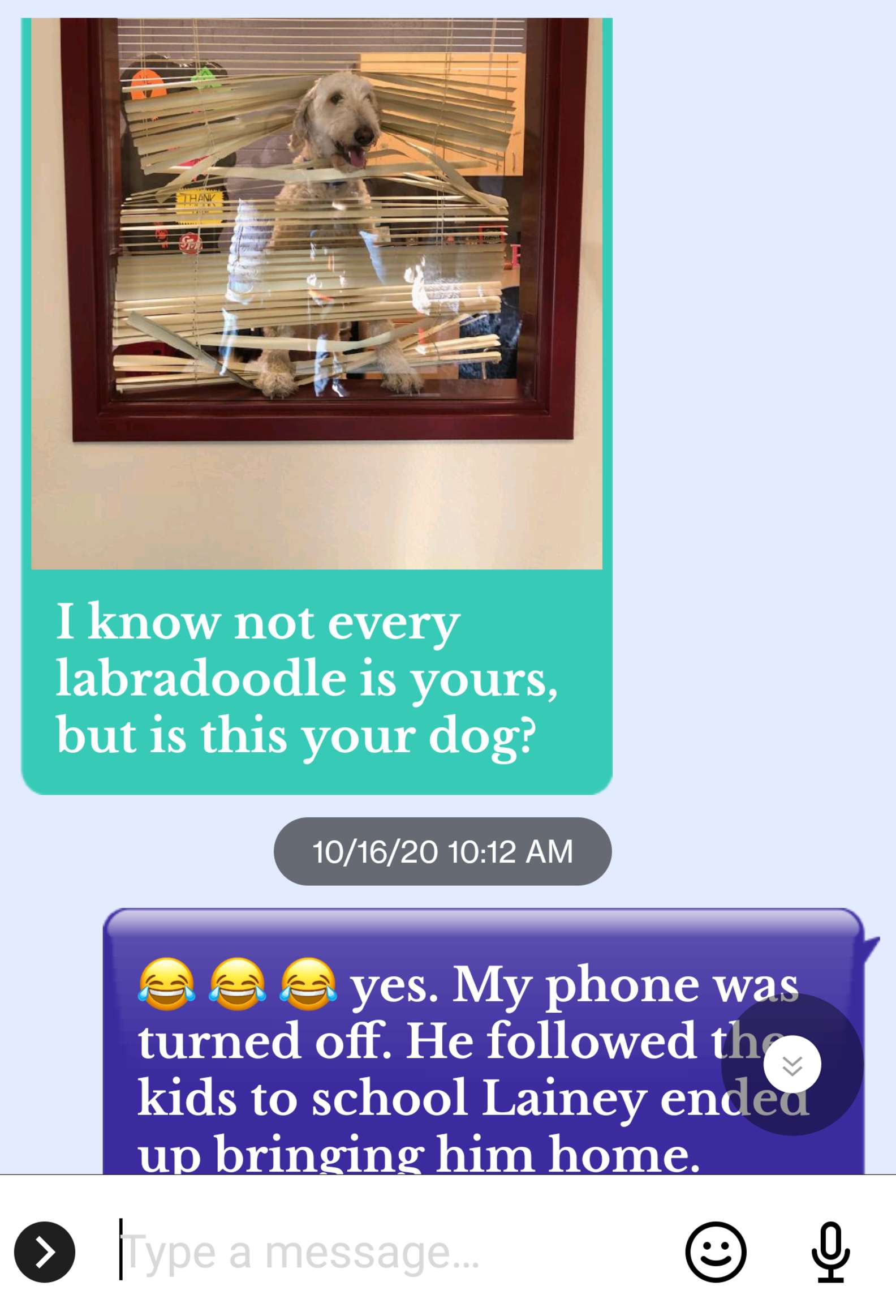 ▼Sandy一進學校就引起所有師生的關注,並被帶到了校長室。Karen的一位鄰居在學校看到Sandy後,拍照傳給她問這是不是她家的狗。Karen看到照片後啼笑皆非,她實在沒想到狗狗會跑到學校去。