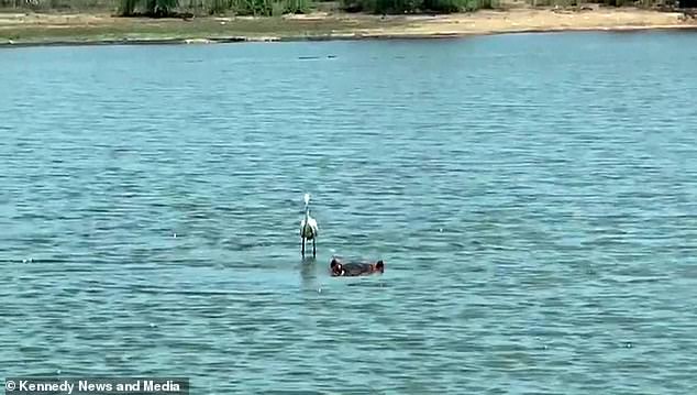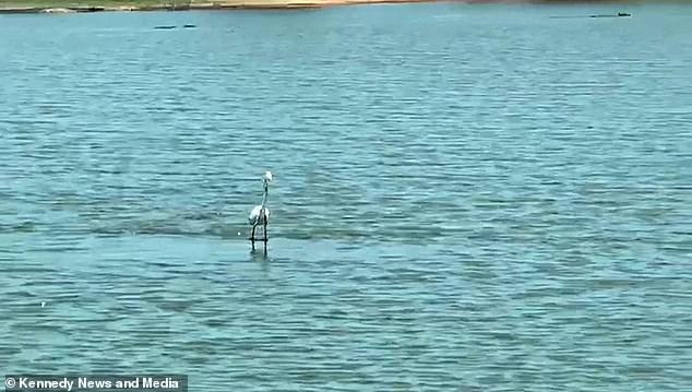 蒼鷺站在水面練輕功? 下秒「神隊友」悄然出水網笑:是你啊~
